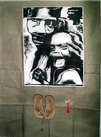 | compassion VII (2003) Fotokopie, Leinwand, Sandalen, Löffel 143 x 95 cm |