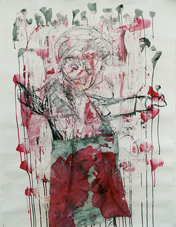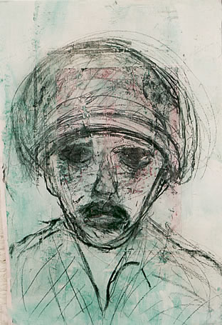 | compassion IX - Soldier living (2003) Papier, Acryl, Kohle 60 x 39 cm |