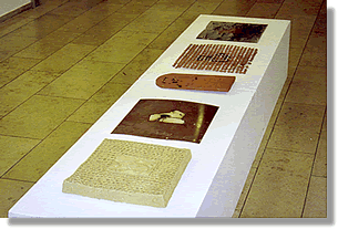 | Ursprung der Welt (2000) Ton, Kupfer, Terrakotta, Draht 5-tlg, 4 x 40 x 40 cm, 1 x 20 x 40 cm |