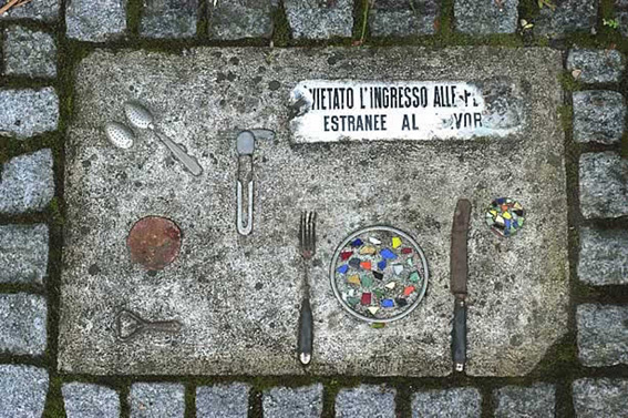 | coperta senza pane (2000) fundstücke in trasszement-mörtel auf betonplatte 60x40 cm |