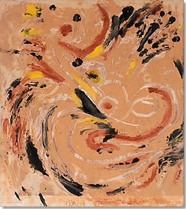 | ausbruch (2000) dispersionsfarben, kleister, vulkansand auf leinwand 130x90 cm |
